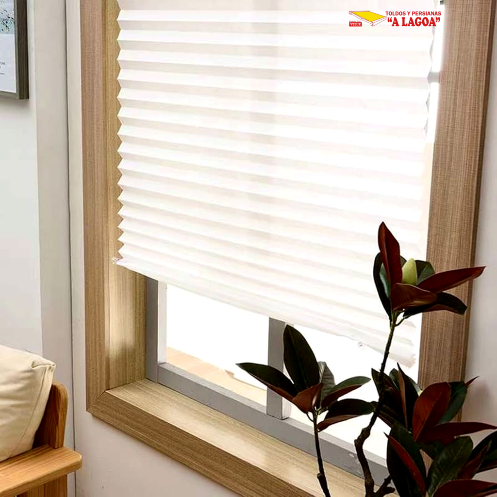 Su diseño ligero y discreto, basado en un tejido plegado, aporta un acabado elegante que se adapta fácilmente a cualquier estilo decorativo. Además, destacan por su gran versatilidad, ya que pueden instalarse en distintos tipos de ventanas, incluso en aquellas inclinadas o de difícil acceso, convirtiéndose en una solución práctica y funcional para viviendas y espacios interiores en Xinzo de Limia y en toda la provincia de Ourense.